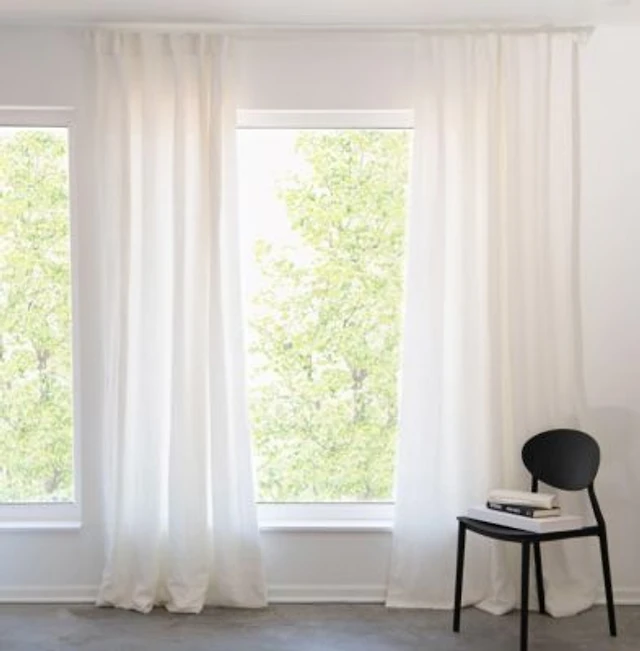 Twill Stripe Anti-Dust Linen Blend Sheer Curtain Panel
