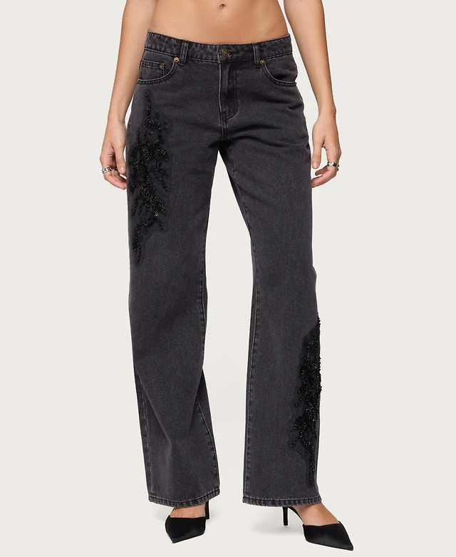 Free People Women's Deep Trance Shine Embroidered Jeans