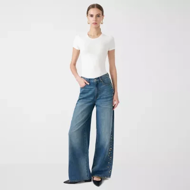 Dkny Jeans Womens Mid Rise Sequin Detail Wide Leg Pants