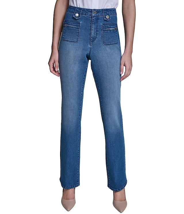 Ming Wang Denim Elastic Waist Slim Flare Boot Cut Jeans