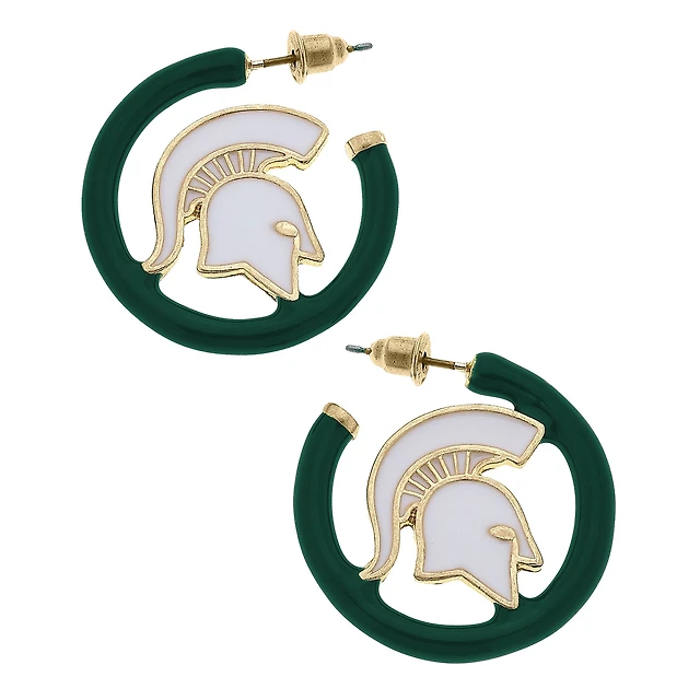 Women' CANVAS Style Michigan State Spartans Enamel Logo Open Hoop Earring
