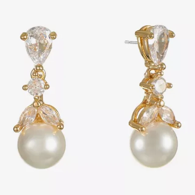 Jessica Simpson Womens Drop and Hoop Earrings - Gold-Tone Earrings with Crystal Embellishments