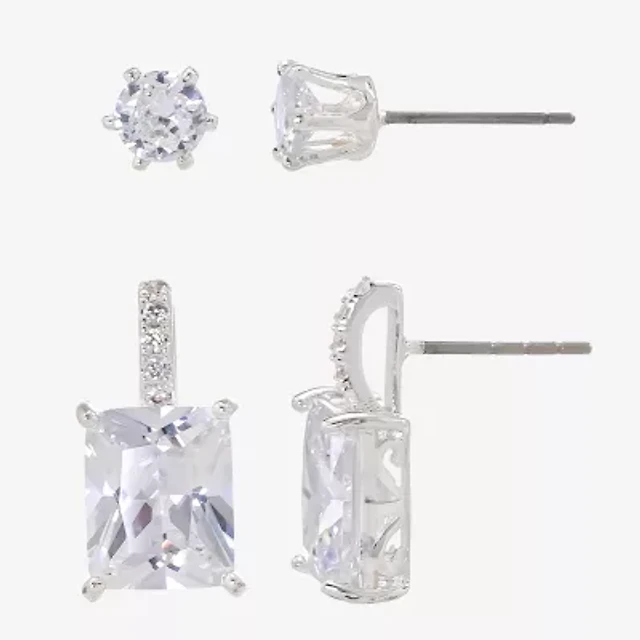 Sparkle Allure Womens Cubic Zirconia 2 Pair Earring Set