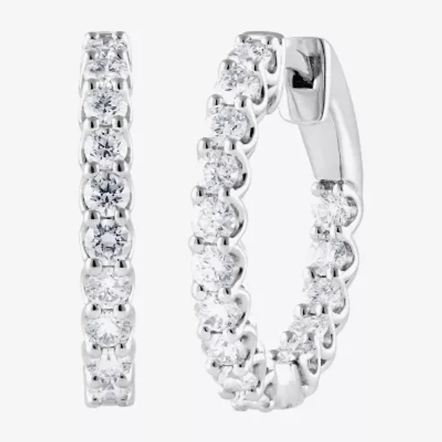 Womens Diamond Accent Natural White Diamond Sterling Silver 16mm Hoop Earrings