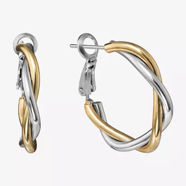 Diamond Cut Womens 14K Two Tone Gold Over Silver 67.5mm Hoop Earrings
