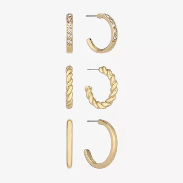 Gold Addiction Womens Cubic Zirconia 10K Gold 3 Pair Earring Set