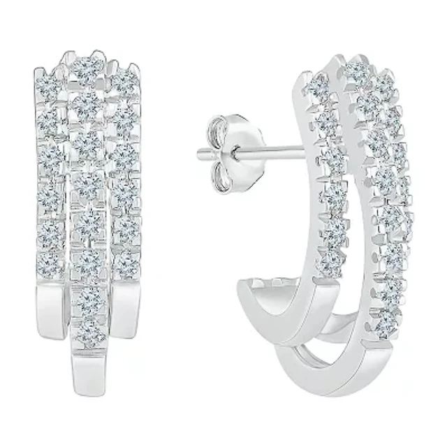 Womens 1/2 CT. T.W. Lab Grown White Diamond Sterling Silver 11.1mm Hoop Earrings