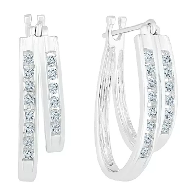 Womens 1/3 CT. T.W. Natural White Diamond Sterling Silver 25mm Cross Hoop Earrings