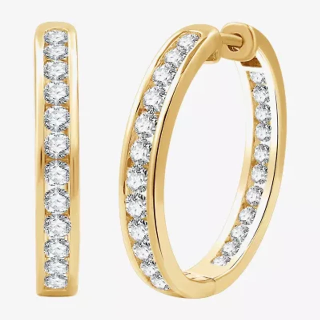 (G/Si2) Womens 1 CT. T.W. Lab Grown White Diamond 10K Gold 23.3mm Hoop Earrings
