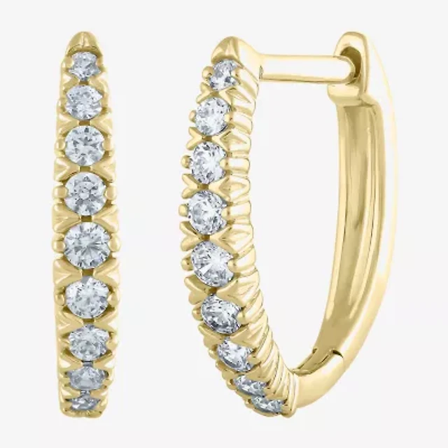 Sterling Silver Diamond Shaped 30mm Cz Hoop Earrings