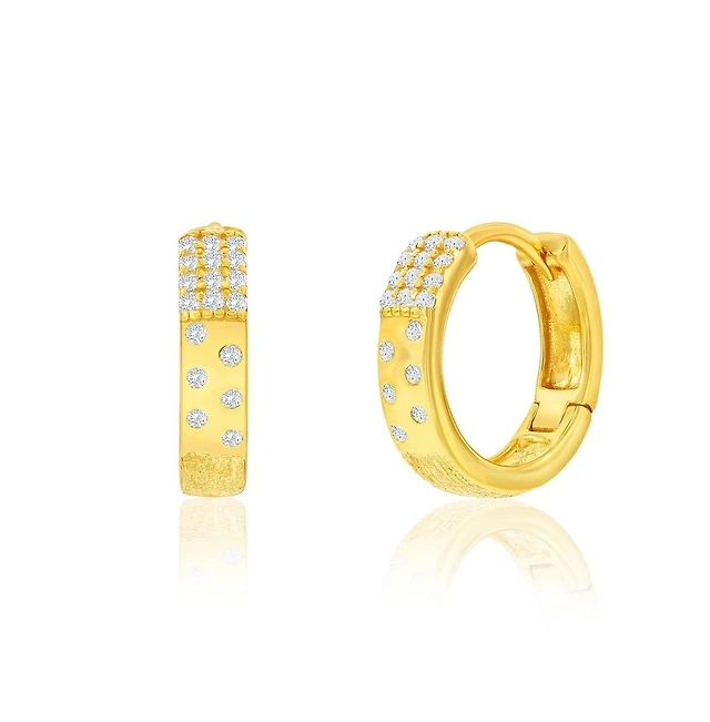 Simona Sterling Silver Small Cz & Brushed Hoop Earrings