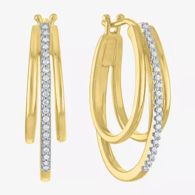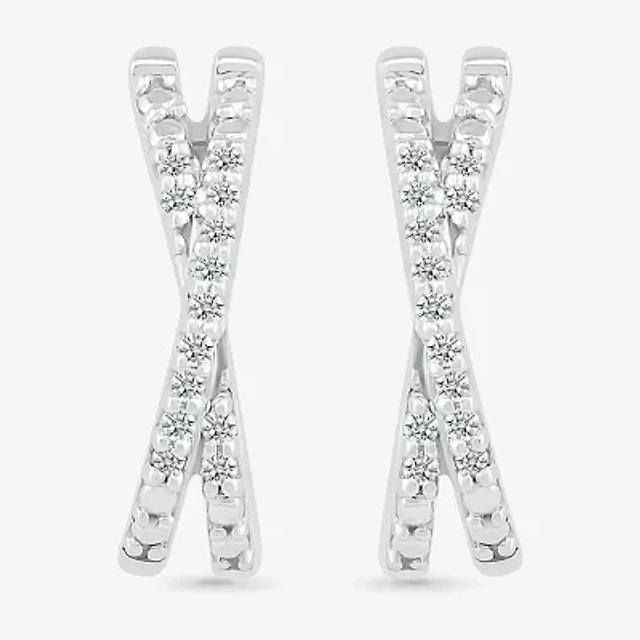(I / I2) Womens 1/10 CT. T.W. Lab Grown White Diamond Sterling Silver 14.8mm Hoop Earrings