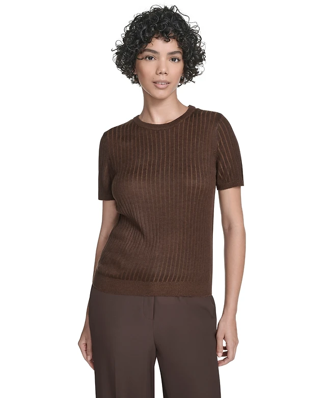 Calvin Klein Women's Ribbed Short-Sleeve Sweater