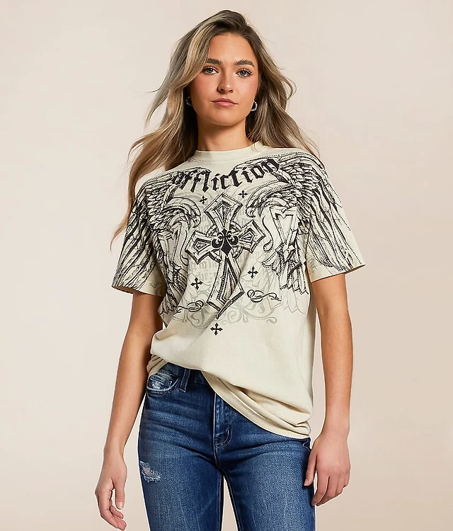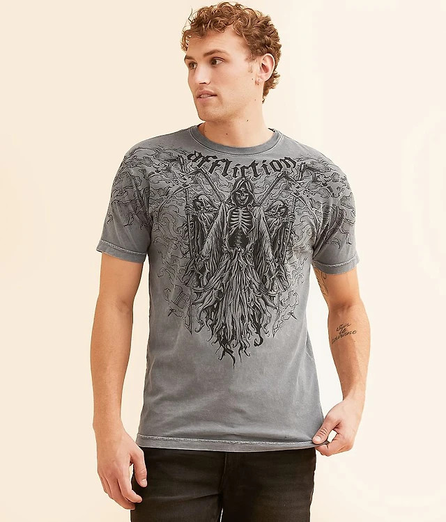Social Collision Metal Foil Skull Dark Wash T-Shirt