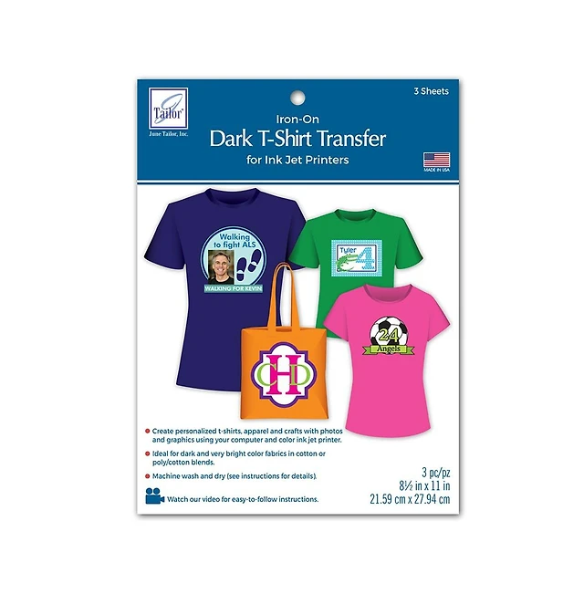 June Tailor JT855 8-1/2-Inch by 11-Inch Dark T-Shirt Inkjet Transfers, 3-Pack