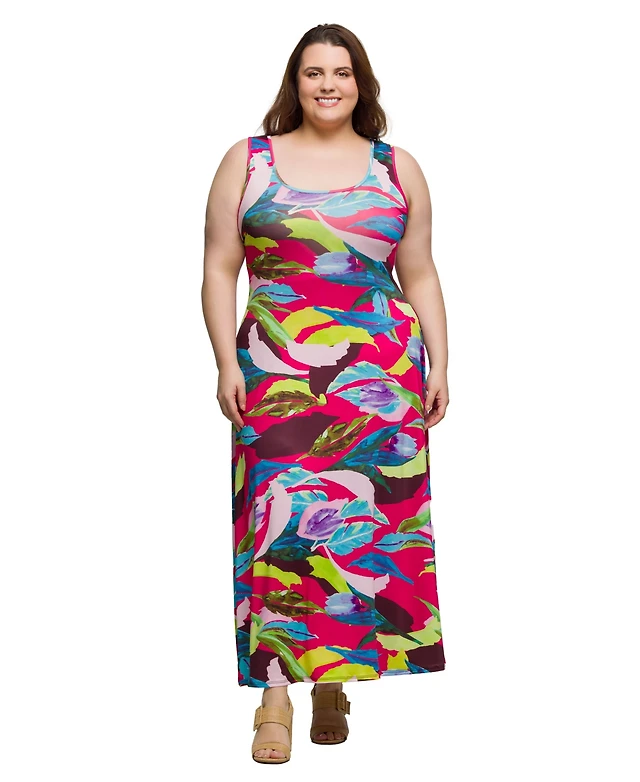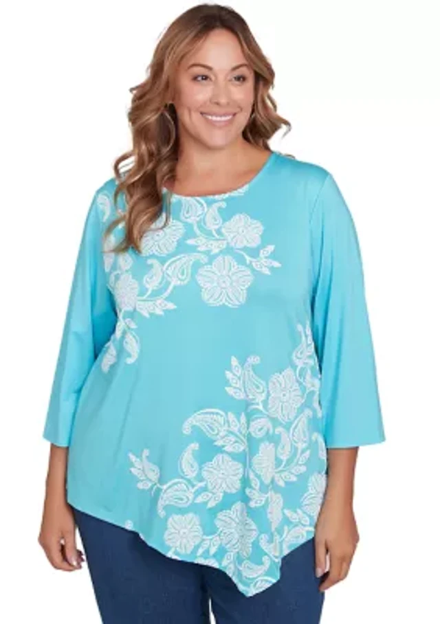Ruby Rd. Plus Scoop Neck Embellished Layered Floral Slub Knit Top