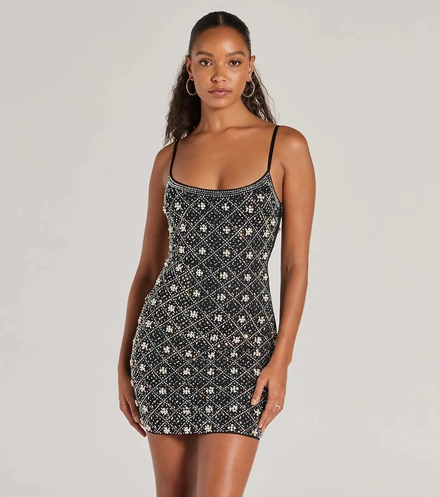 Night Bloom Floral Rhinestone Mini Dress