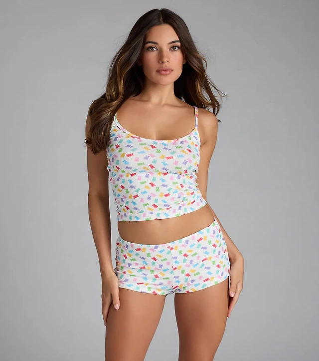 Sweet And Fruity Gummy Bear Print Pajama Tank Top