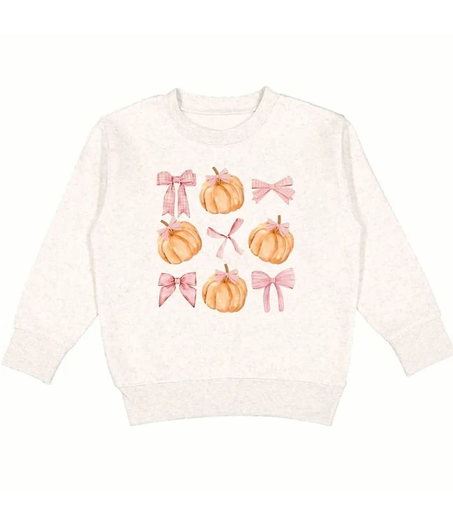 Sweet Wink Little Girls Long-Sleeve Coquette Pumpkin/Bow Printed Sweatshirt