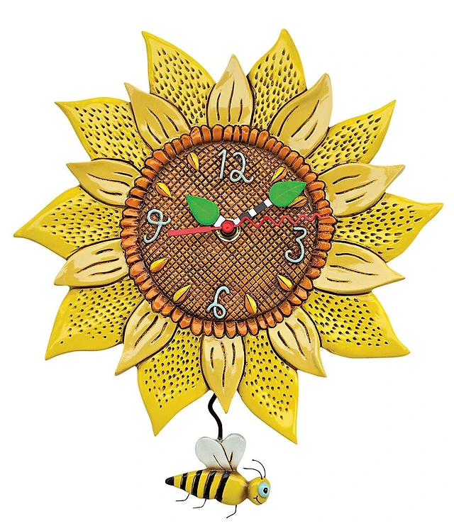 Allen Designs by Enesco Collection Blooming Bright Smiling Sun Battery-Operated Sculpted Pendulum Wall Clock