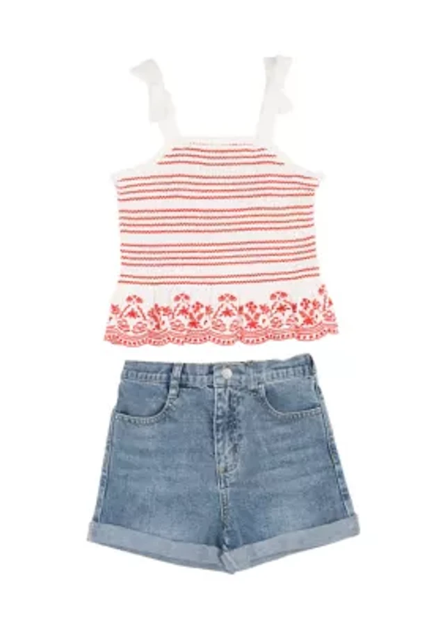 Tractr Big Girls Braided Waist Pleated Denim Shorts