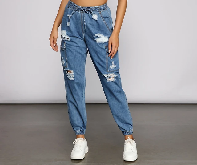 Grab N' Go Denim Cargo Jogger Pants