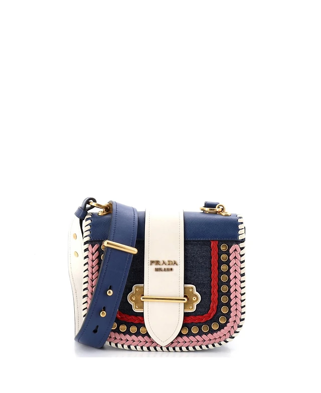 Pre-Owned Prada Small Cahier Crossbody Bag Embellished Denim and Leather