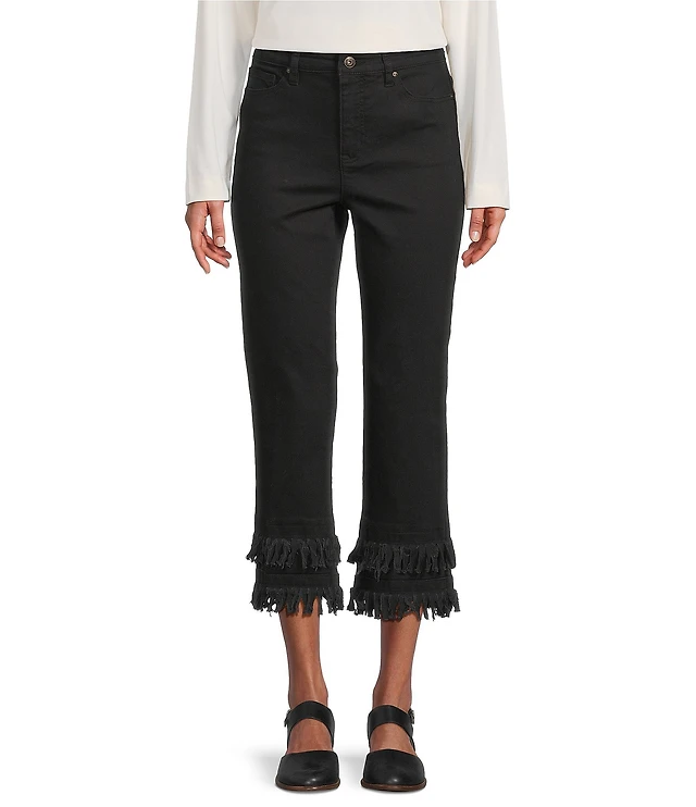 John Mark Straight Leg 5-Pocket Fringe Hem Crop Jeans