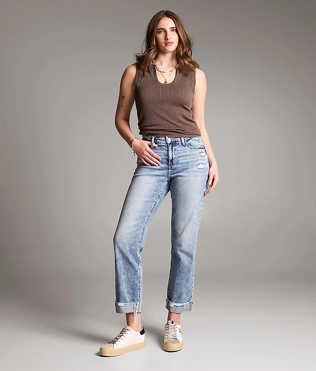 Indigo Poppy Women's Tummy Tuck Wide Cuff Straight Cropped Jeans