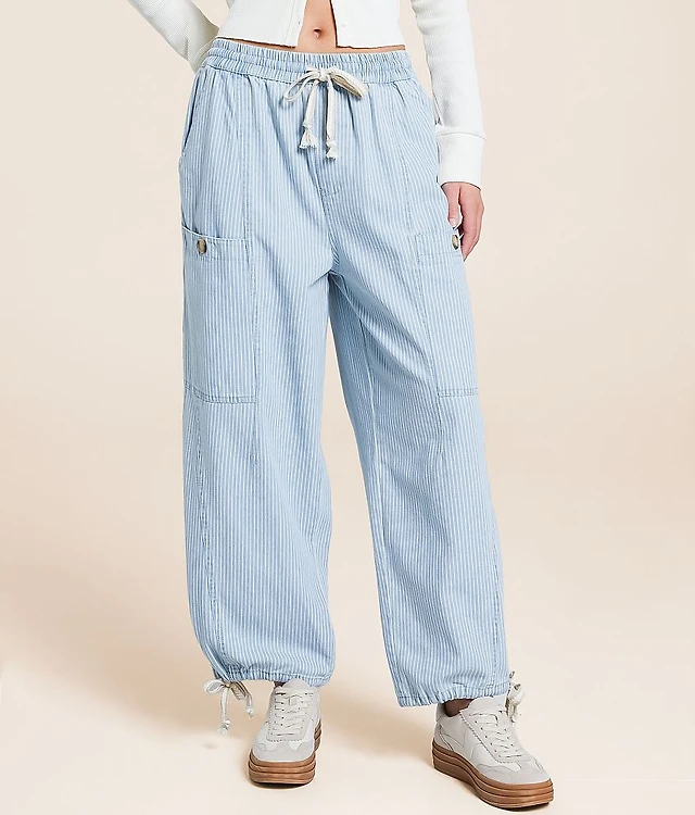 Cable & Gauge Women's Stripe Slim Fit Pull On Cropped Pant