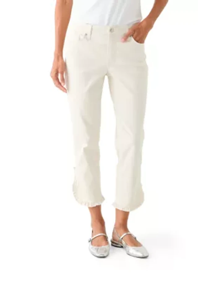 Prosperity Denim Mid Rise Straight Leg Crochet Hem Cropped Jeans