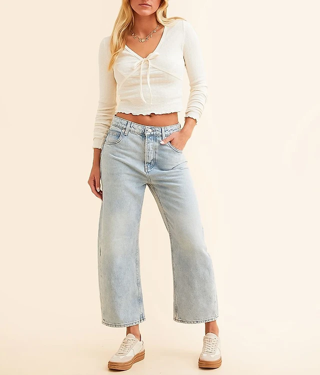 Bayeas Women's Mid-Rise Wide-Leg Denim Patch-Pocket Jeans