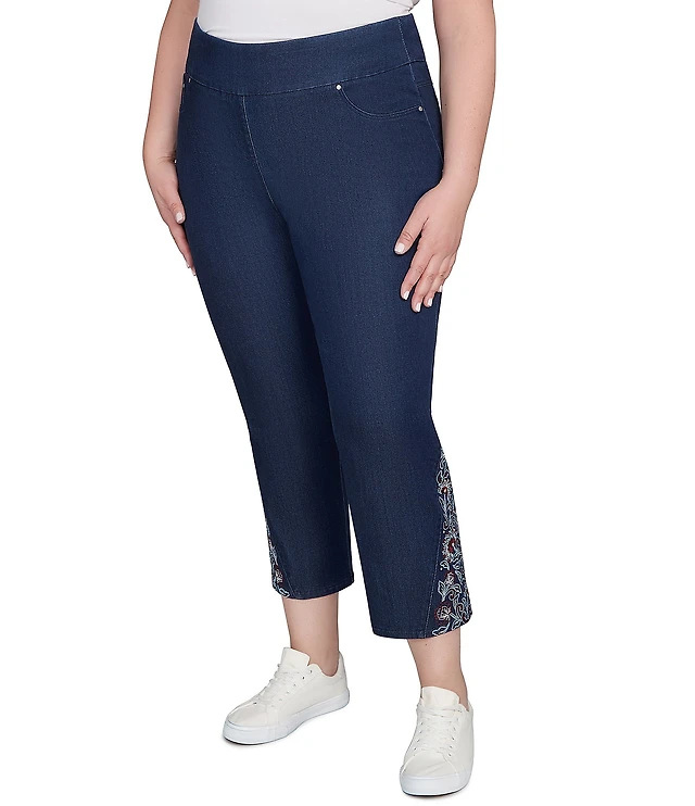 Lands' End Women's Plus Starfish Mid Rise Knit Denim Straight Jeans