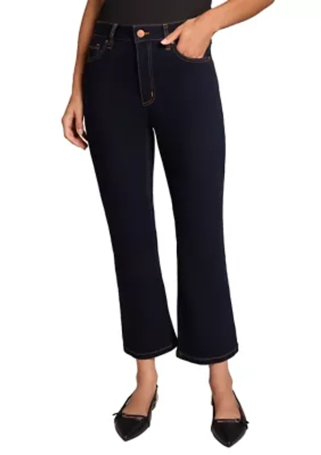 Indigo Poppy Women's Tummy Tuck Wide Cuff Straight Cropped Jeans