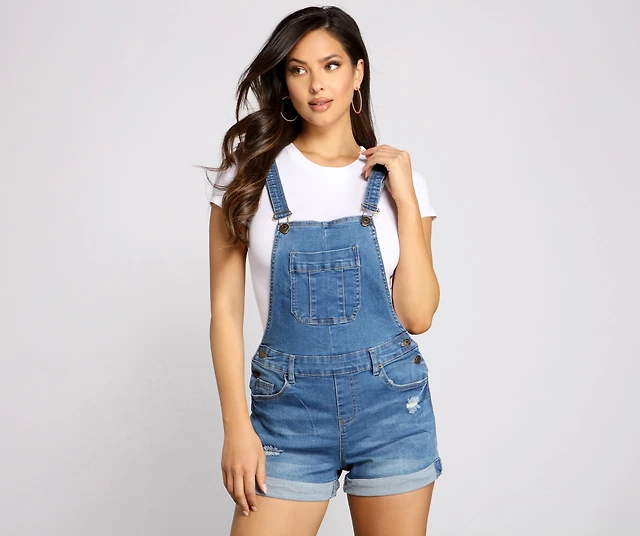 Stylishly Distressed Denim Shortalls