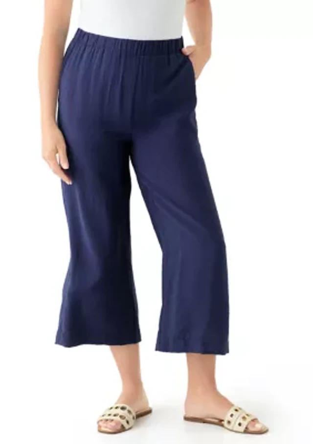 Multiples Plus Size Wide Leg Pull-On Cropped Denim Jeans