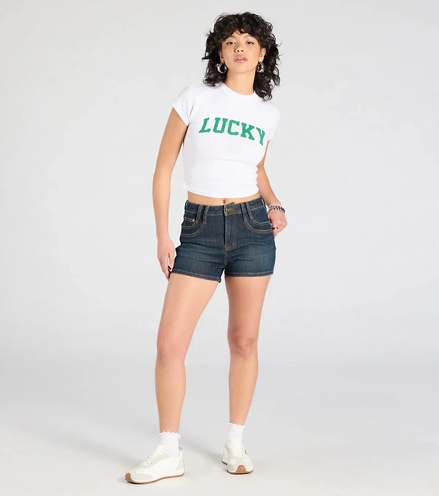 Ultra Low-Rise Embroidered Denim Mini Shorts