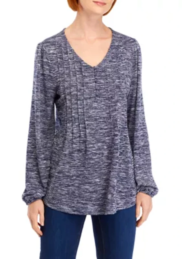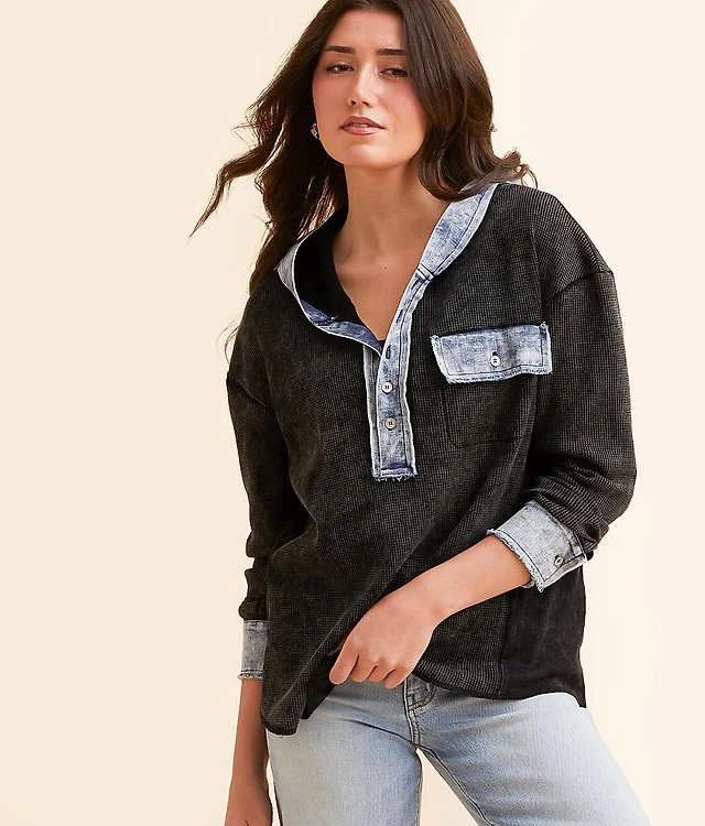 Women's Long Sleeve Button Down Shirt with Pointelle Ribbing