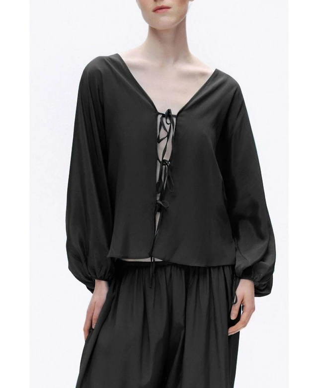 English Factory Women's Silky Shirt with Poplin Combo Collar