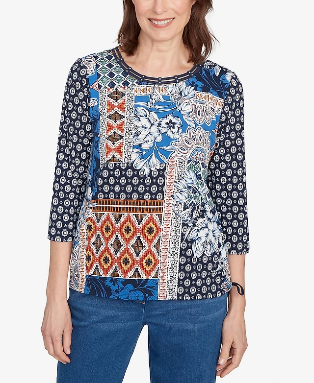 Lucky Brand Women's Printed Linen-Blend Camp Shirt
