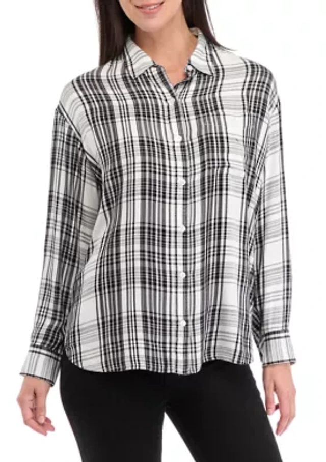 VOLCOM Womens Juniors Cuffed Long Sleeve Button-Down Shirt