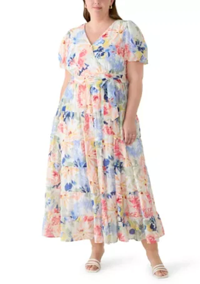 Robbie Bee Plus Clip-Dot Tiered Dress