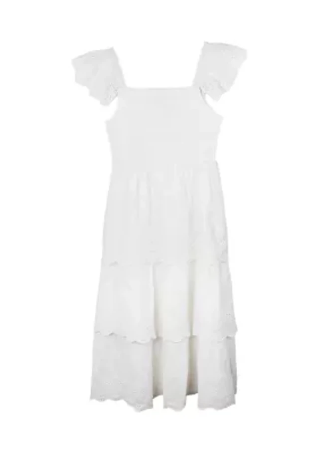 Girls 7-16 Floral Eyelet Lace Tiered Dress