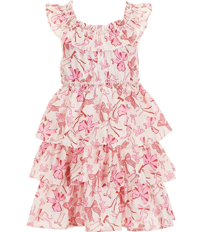 Baby Sara Little Girls Ruffle-Collar Bow-Print Tiered Dress