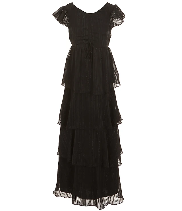 Pretty Glam Glitter Ruffled Tiered Skater Dress