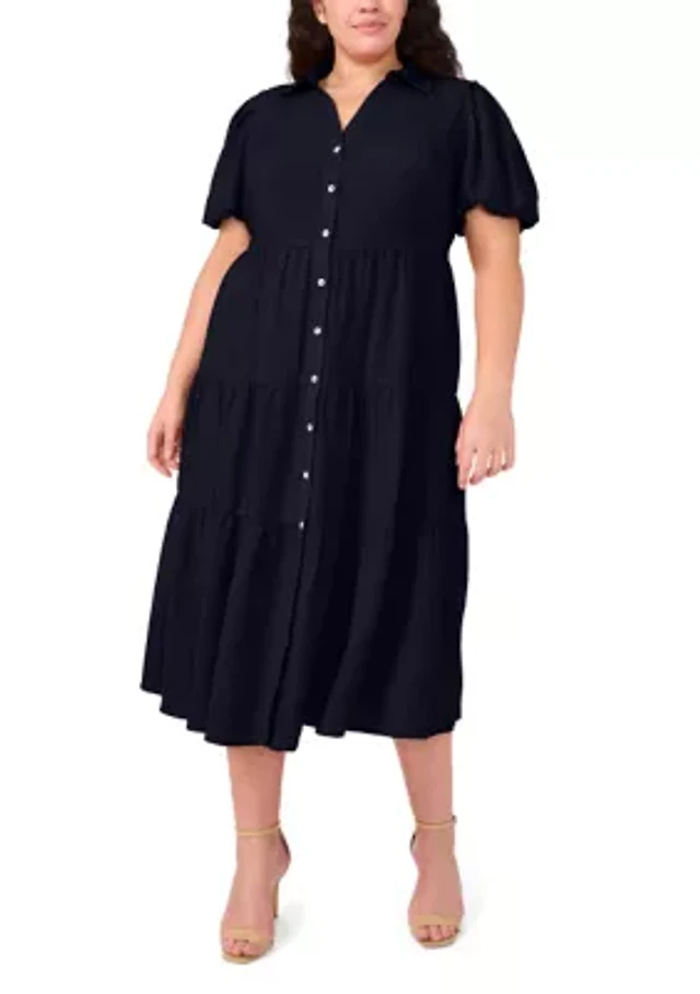 CeCe Women's Collared Short-Sleeve Tiered Shirtdress