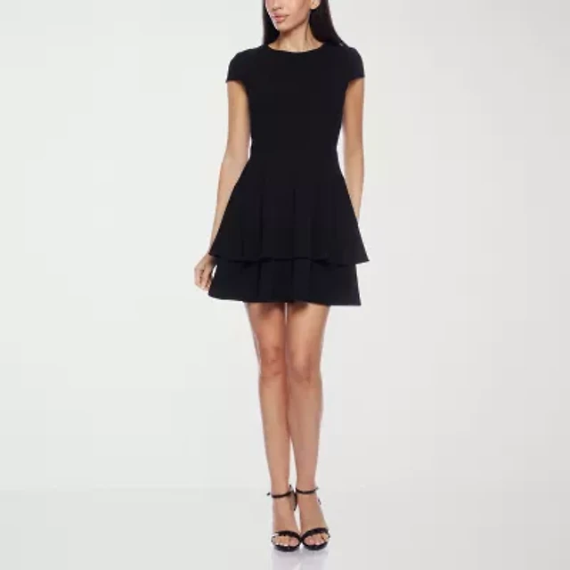 Melonie T Womens Short Sleeve Midi Fit + Flare Dress