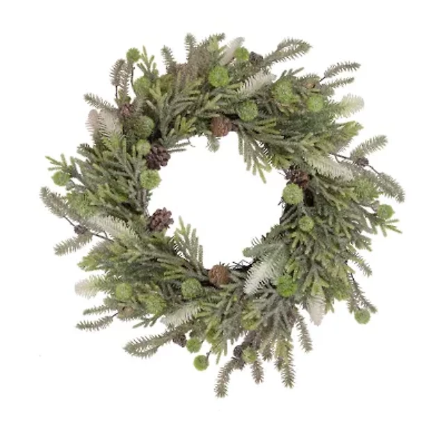 Northlight 24" Artificial With Frosted Foliage And Pine Cones Wreath