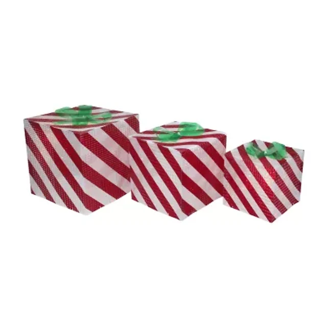 Northlight Set Of 3 Red And White Striped Gift Box Outdoor Decor Christmas Yard Art