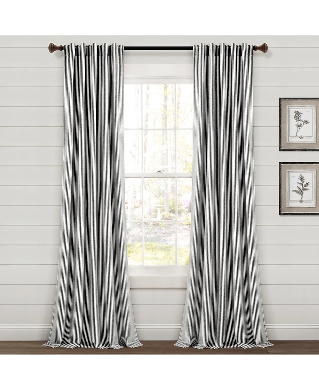 Lush Decor Farmhouse Vintage Stripe Yarn Dyed Cotton Back Tab/Rod Pocket Window Curtain Panels